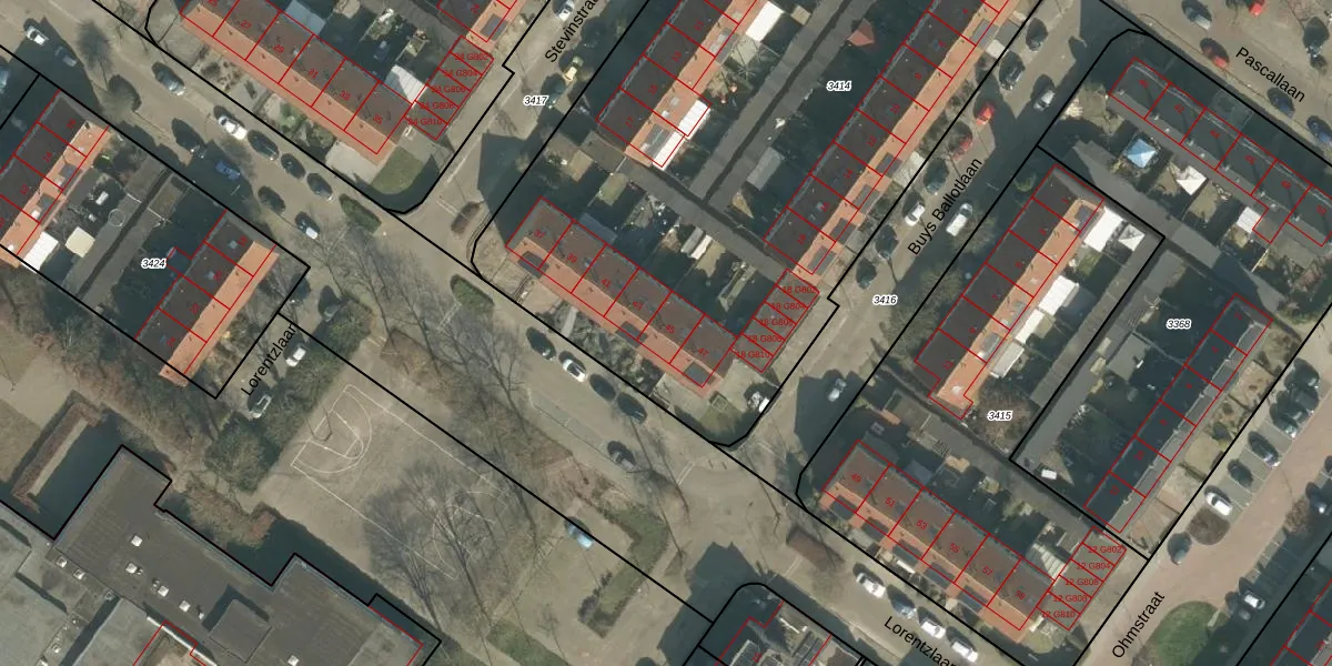 Het perceel waarop Lorentzlaan 45 staat heeft een oppervlakte van 4267 m². Dit is een zeer groot perceel. De perceeloppervlakte wordt geregistreerd door het Kadaster. Gedetailleerde informatie over de maten van dit perceel kunt u vinden in het rapport Kadastrale kaart met maatvoering van Lorentzlaan 45.
