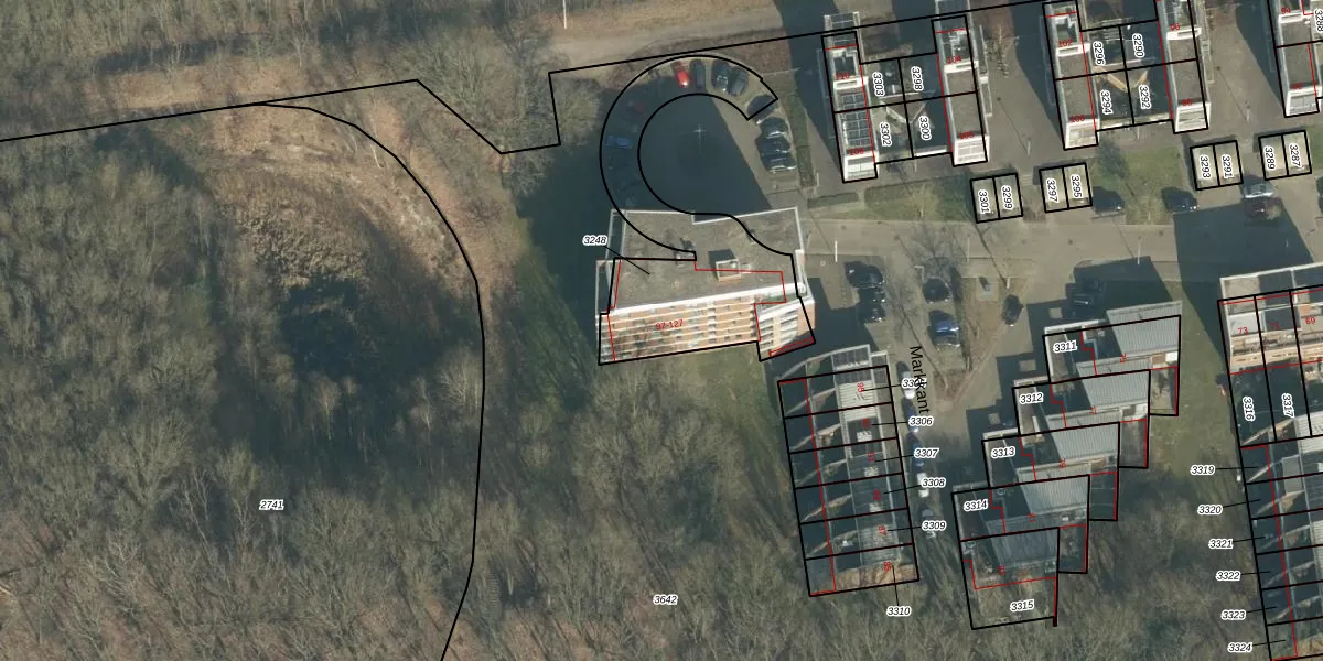 Het perceel waarop Markkant 107 staat heeft een oppervlakte van 764 m². Dit is een groot perceel. De perceeloppervlakte wordt geregistreerd door het Kadaster. Gedetailleerde informatie over de maten van dit perceel kunt u vinden in het rapport Kadastrale kaart met maatvoering van Markkant 107.