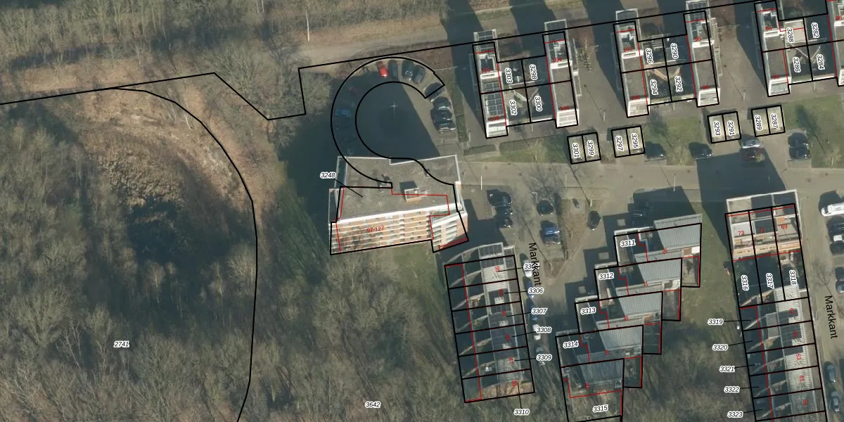Het perceel waarop Markkant 117 staat heeft een oppervlakte van 764 m². Dit is een groot perceel. De perceeloppervlakte wordt geregistreerd door het Kadaster. Gedetailleerde informatie over de maten van dit perceel kunt u vinden in het rapport Kadastrale kaart met maatvoering van Markkant 117.