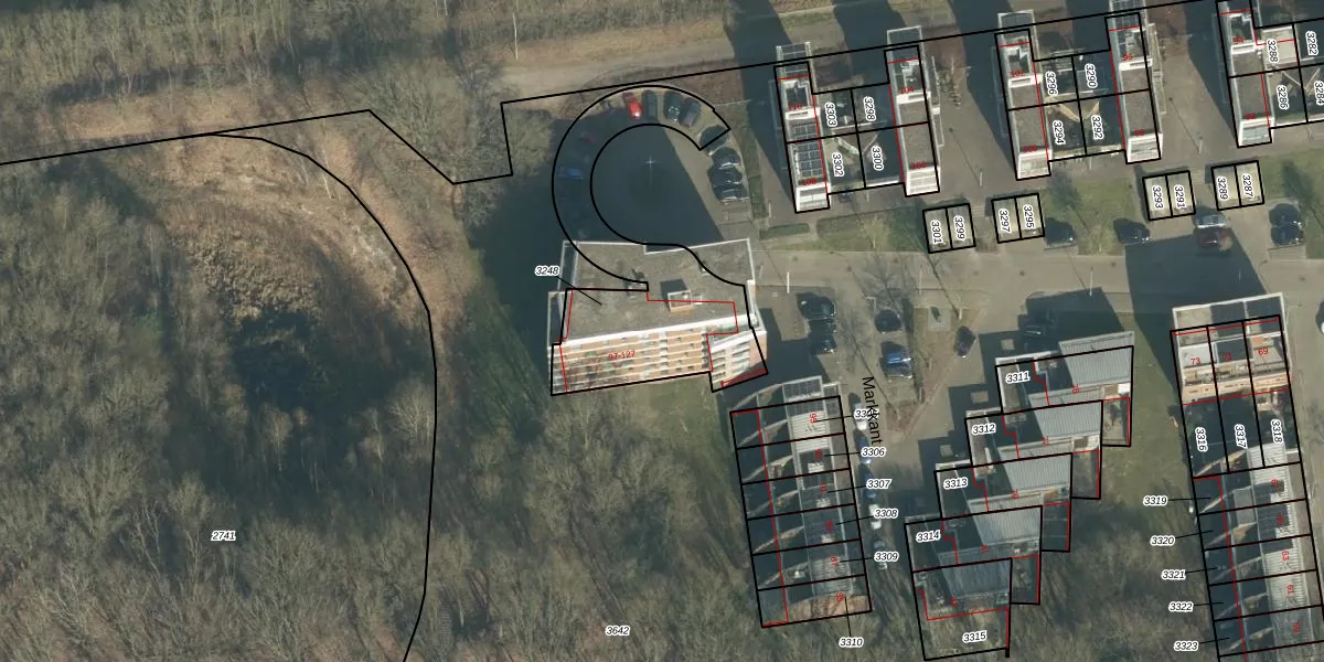 Het perceel waarop Markkant 127 staat heeft een oppervlakte van 764 m². Dit is een groot perceel. De perceeloppervlakte wordt geregistreerd door het Kadaster. Gedetailleerde informatie over de maten van dit perceel kunt u vinden in het rapport Kadastrale kaart met maatvoering van Markkant 127.