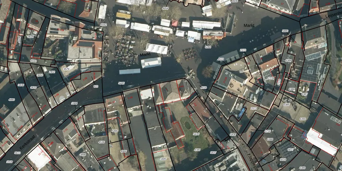 Het perceel waarop Markt 5 staat heeft een oppervlakte van 1397 m². Dit is een zeer groot perceel. De perceeloppervlakte wordt geregistreerd door het Kadaster. Gedetailleerde informatie over de maten van dit perceel kunt u vinden in het rapport Kadastrale kaart met maatvoering van Markt 5.