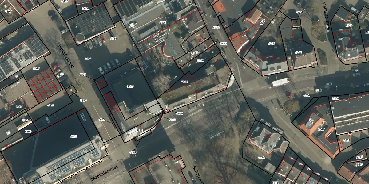 Het perceel waarop Mathildastraat 13 staat heeft een oppervlakte van 617 m². Dit is een groot perceel. De perceeloppervlakte wordt geregistreerd door het Kadaster. Gedetailleerde informatie over de maten van dit perceel kunt u vinden in het rapport Kadastrale kaart met maatvoering van Mathildastraat 13.