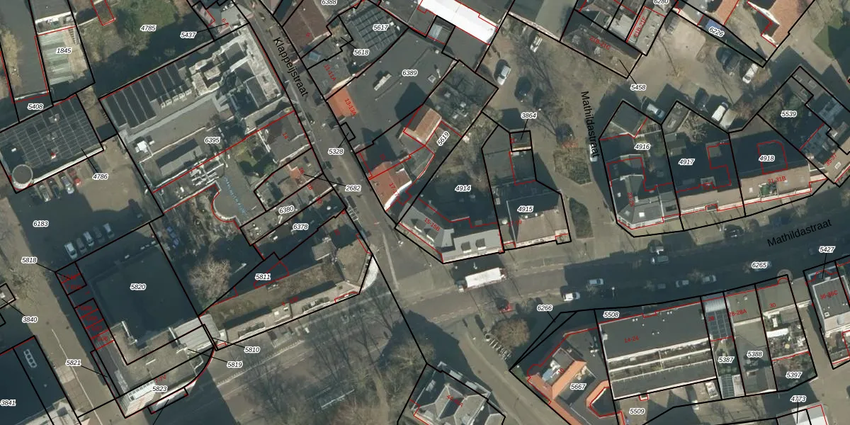 Het perceel waarop Mathildastraat 15-B staat heeft een oppervlakte van 480 m². Dit is een groot perceel. De perceeloppervlakte wordt geregistreerd door het Kadaster. Gedetailleerde informatie over de maten van dit perceel kunt u vinden in het rapport Kadastrale kaart met maatvoering van Mathildastraat 15-B.