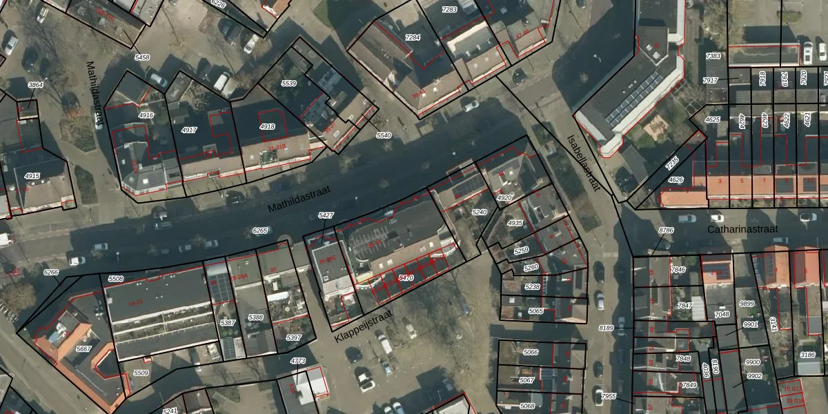 Het perceel waarop Mathildastraat 44 staat heeft een oppervlakte van 559 m². Dit is een groot perceel. De perceeloppervlakte wordt geregistreerd door het Kadaster. Gedetailleerde informatie over de maten van dit perceel kunt u vinden in het rapport Kadastrale kaart met maatvoering van Mathildastraat 44.