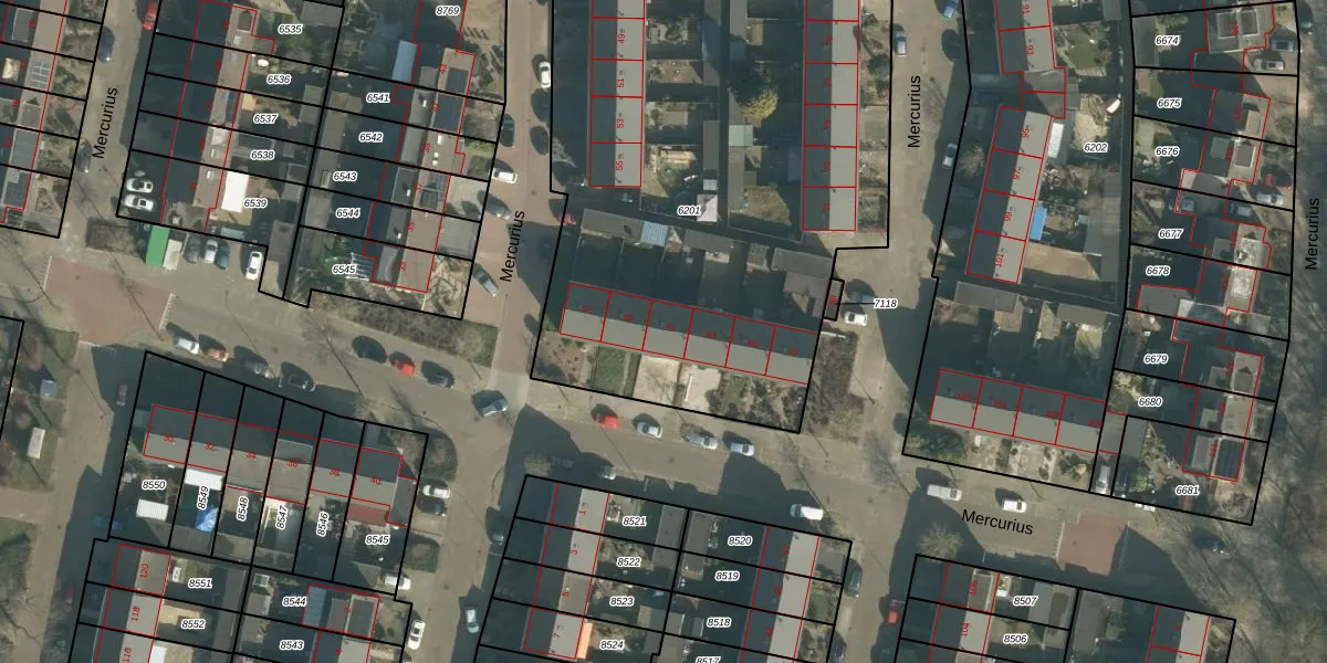 Het perceel waarop Mercurius 61 staat heeft een oppervlakte van 3568 m². Dit is een zeer groot perceel. De perceeloppervlakte wordt geregistreerd door het Kadaster. Gedetailleerde informatie over de maten van dit perceel kunt u vinden in het rapport Kadastrale kaart met maatvoering van Mercurius 61.
