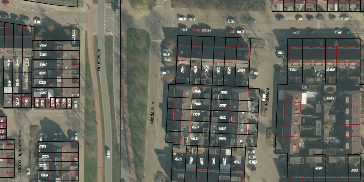 Het perceel waarop Middachten 61 staat heeft een oppervlakte van 172 m². Dit is een middelgroot perceel. De perceeloppervlakte wordt geregistreerd door het Kadaster. Gedetailleerde informatie over de maten van dit perceel kunt u vinden in het rapport Kadastrale kaart met maatvoering van Middachten 61.