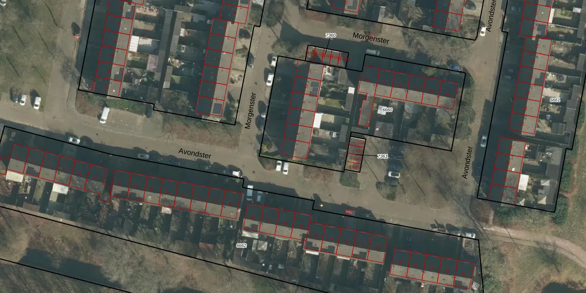 Het perceel waarop Morgenster 2 staat heeft een oppervlakte van 1956 m². Dit is een zeer groot perceel. De perceeloppervlakte wordt geregistreerd door het Kadaster. Gedetailleerde informatie over de maten van dit perceel kunt u vinden in het rapport Kadastrale kaart met maatvoering van Morgenster 2.