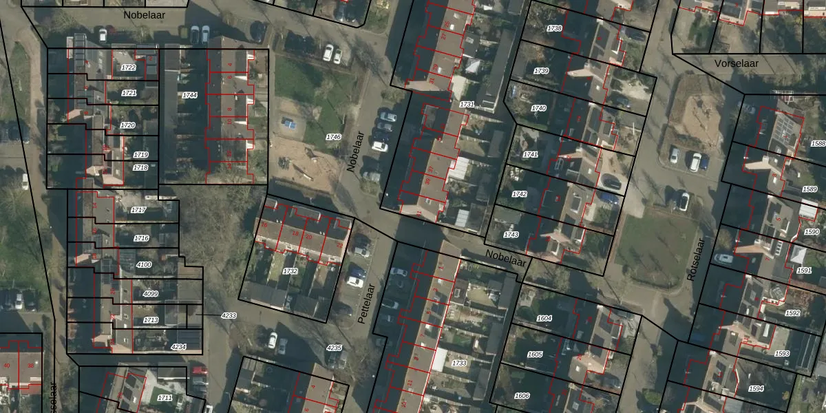 Het perceel waarop Nobelaar 41 staat heeft een oppervlakte van 2024 m². Dit is een zeer groot perceel. De perceeloppervlakte wordt geregistreerd door het Kadaster. Gedetailleerde informatie over de maten van dit perceel kunt u vinden in het rapport Kadastrale kaart met maatvoering van Nobelaar 41.