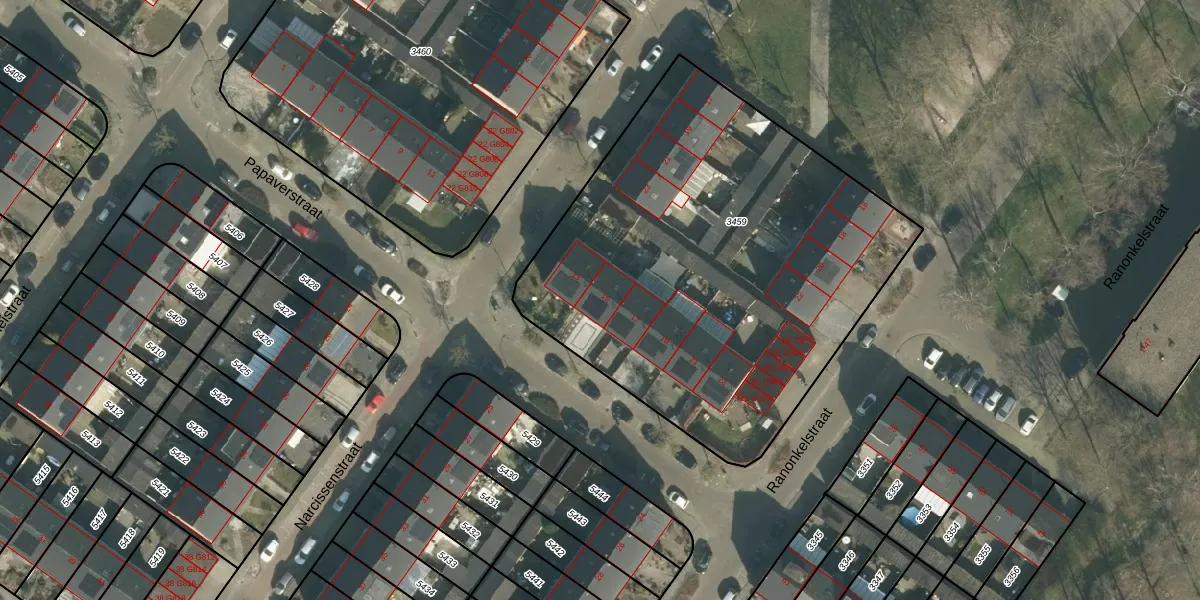 Het perceel waarop Papaverstraat 15 staat heeft een oppervlakte van 2537 m². Dit is een zeer groot perceel. De perceeloppervlakte wordt geregistreerd door het Kadaster. Gedetailleerde informatie over de maten van dit perceel kunt u vinden in het rapport Kadastrale kaart met maatvoering van Papaverstraat 15.
