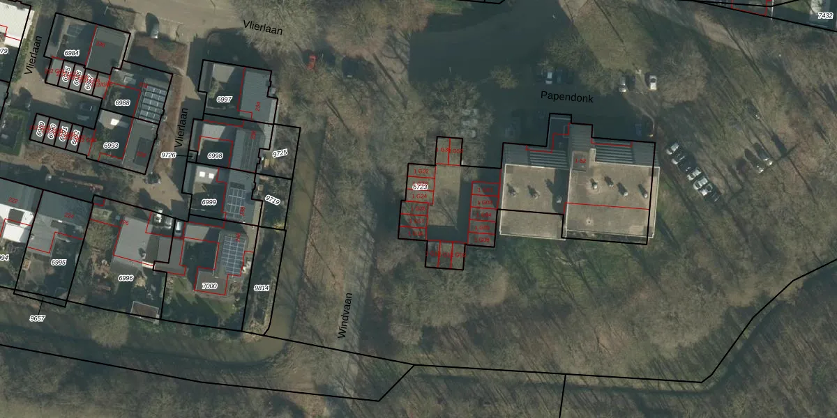 Het perceel waarop Papendonk 1-G20 staat heeft een oppervlakte van 1324 m². Dit is een zeer groot perceel. De perceeloppervlakte wordt geregistreerd door het Kadaster. Gedetailleerde informatie over de maten van dit perceel kunt u vinden in het rapport Kadastrale kaart met maatvoering van Papendonk 1-G20.
