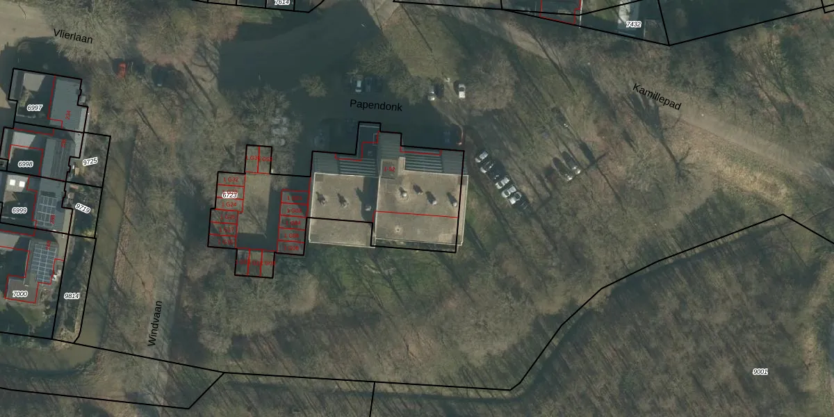 Het perceel waarop Papendonk 29 staat heeft een oppervlakte van 1324 m². Dit is een zeer groot perceel. De perceeloppervlakte wordt geregistreerd door het Kadaster. Gedetailleerde informatie over de maten van dit perceel kunt u vinden in het rapport Kadastrale kaart met maatvoering van Papendonk 29.