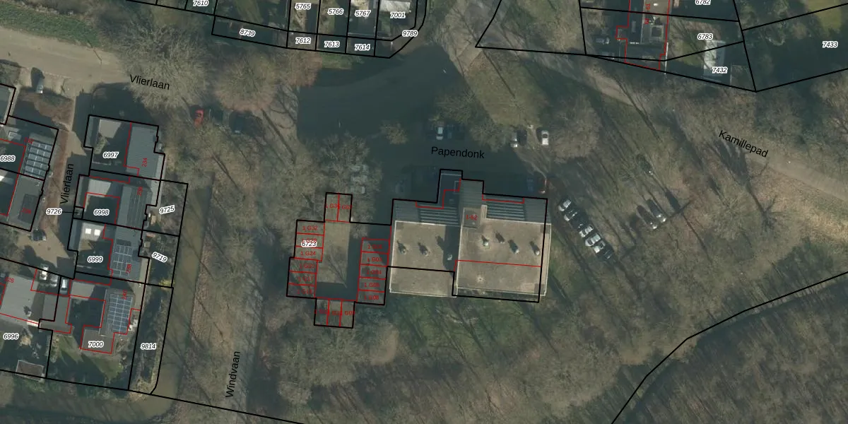 Het perceel waarop Papendonk 8 staat heeft een oppervlakte van 1324 m². Dit is een zeer groot perceel. De perceeloppervlakte wordt geregistreerd door het Kadaster. Gedetailleerde informatie over de maten van dit perceel kunt u vinden in het rapport Kadastrale kaart met maatvoering van Papendonk 8.