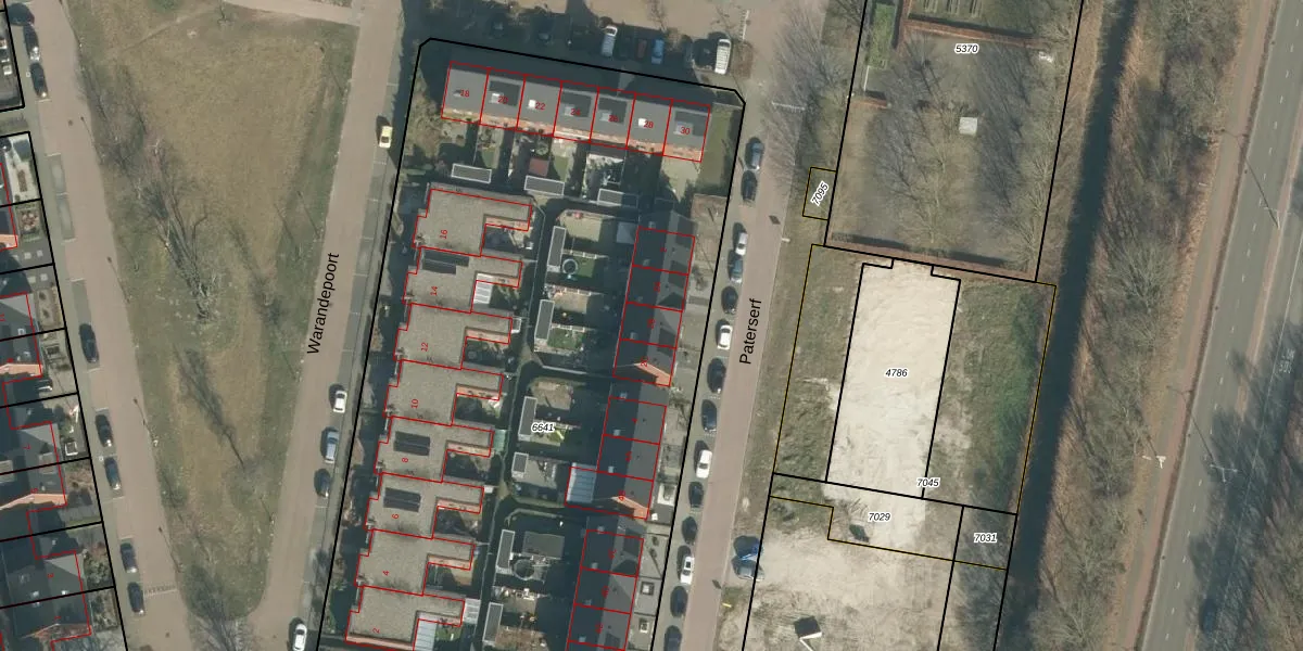 Paterserf 2-B is gelegen op kadastraal perceel OTH01M6641. Deze kadastrale aanduiding is uniek en wordt gebruikt door het Kadaster om eigendomsrechten en andere zakelijke rechten vast te leggen. Het perceel maakt onderdeel uit van de kadastrale gemeente Oosterhout.