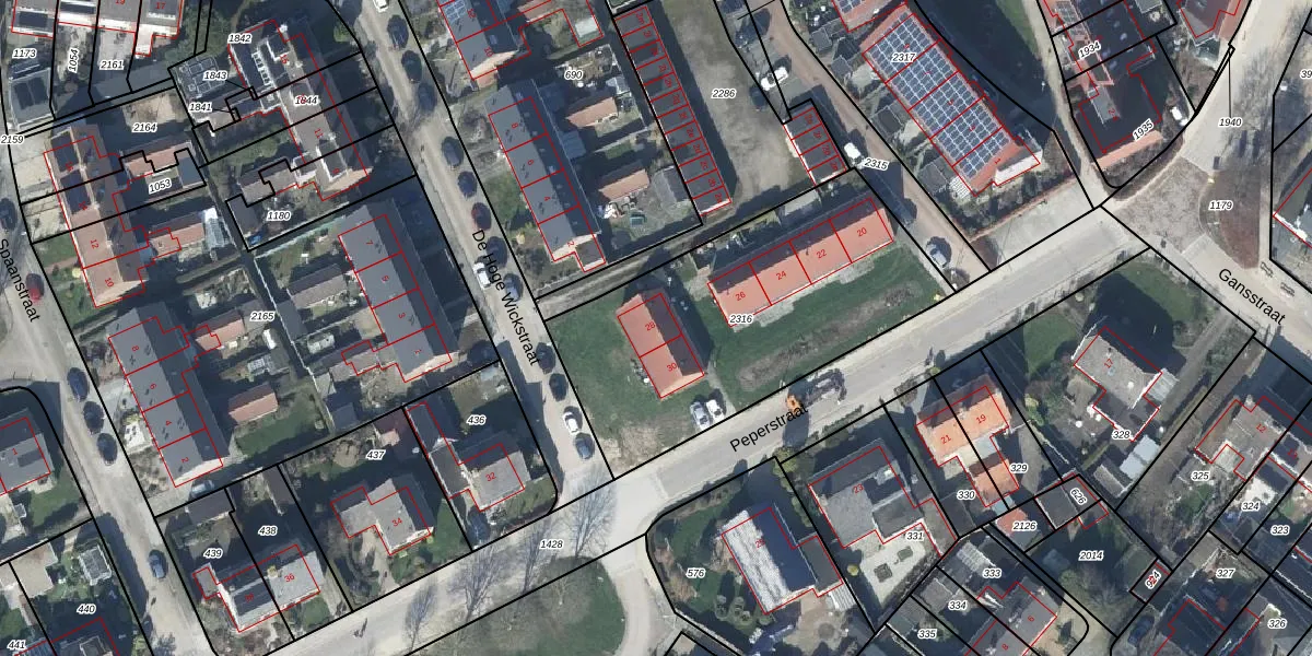 Peperstraat 28 is gelegen op kadastraal perceel VBG02L2316. Deze kadastrale aanduiding is uniek en wordt gebruikt door het Kadaster om eigendomsrechten en andere zakelijke rechten vast te leggen. Het perceel maakt onderdeel uit van de kadastrale gemeente Valburg.
