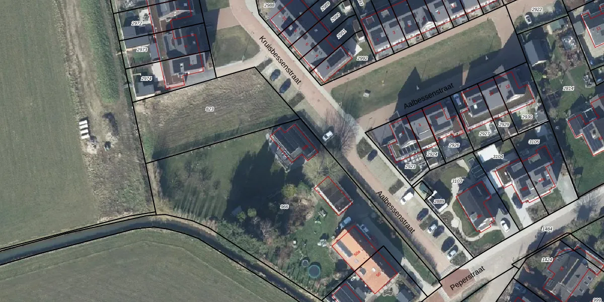 Het perceel waarop Peperstraat 50-b staat heeft een oppervlakte van 2865 m². Dit is een zeer groot perceel. De perceeloppervlakte wordt geregistreerd door het Kadaster. Gedetailleerde informatie over de maten van dit perceel kunt u vinden in het rapport Kadastrale kaart met maatvoering van Peperstraat 50-b.