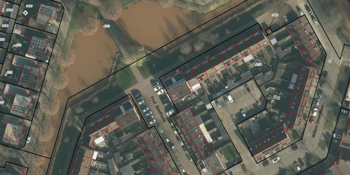 Prof. Beelhoek 23 is gelegen op kadastraal perceel OTH01C4115. Deze kadastrale aanduiding is uniek en wordt gebruikt door het Kadaster om eigendomsrechten en andere zakelijke rechten vast te leggen. Het perceel maakt onderdeel uit van de kadastrale gemeente Oosterhout.