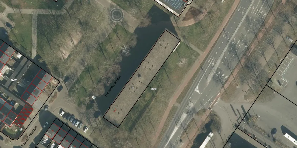 Het perceel waarop Ranonkelstraat 21 staat heeft een oppervlakte van 891 m². Dit is een groot perceel. De perceeloppervlakte wordt geregistreerd door het Kadaster. Gedetailleerde informatie over de maten van dit perceel kunt u vinden in het rapport Kadastrale kaart met maatvoering van Ranonkelstraat 21.
