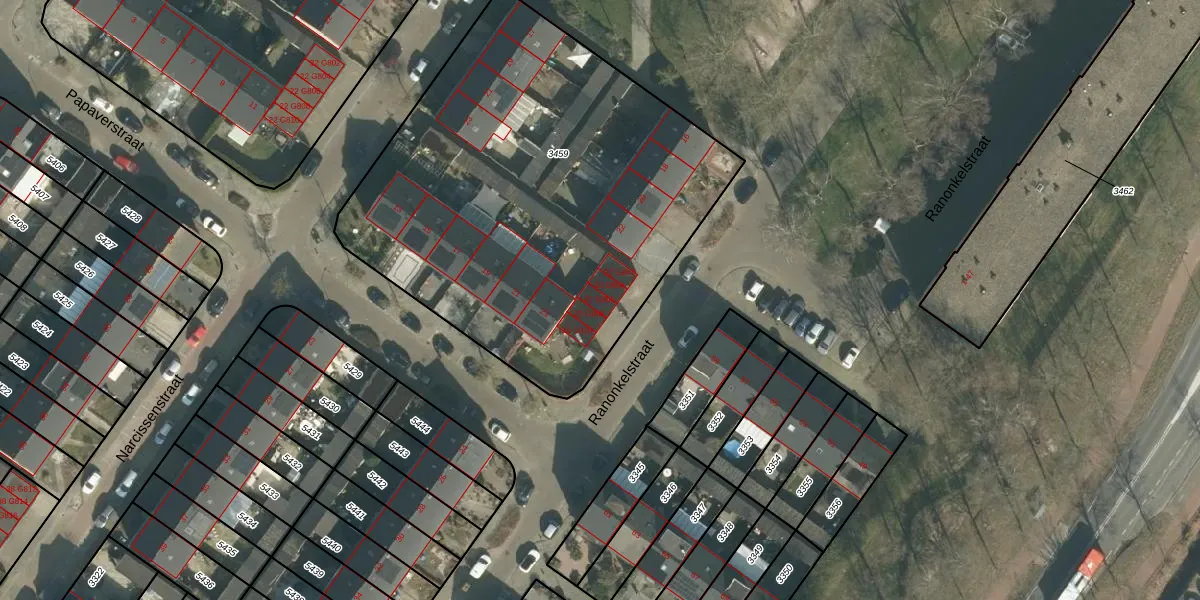 Het perceel waarop Ranonkelstraat 22-G806 staat heeft een oppervlakte van 2537 m². Dit is een zeer groot perceel. De perceeloppervlakte wordt geregistreerd door het Kadaster. Gedetailleerde informatie over de maten van dit perceel kunt u vinden in het rapport Kadastrale kaart met maatvoering van Ranonkelstraat 22-G806.