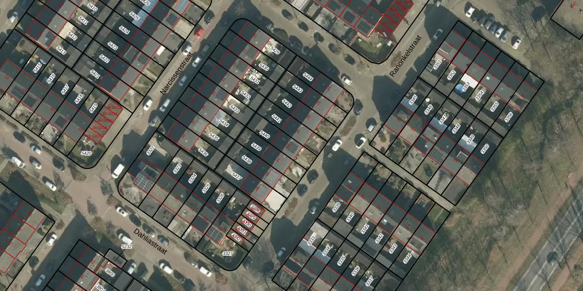 Het perceel waarop Ranonkelstraat 32 staat heeft een oppervlakte van 156 m². Dit is een middelgroot perceel. De perceeloppervlakte wordt geregistreerd door het Kadaster. Gedetailleerde informatie over de maten van dit perceel kunt u vinden in het rapport Kadastrale kaart met maatvoering van Ranonkelstraat 32.