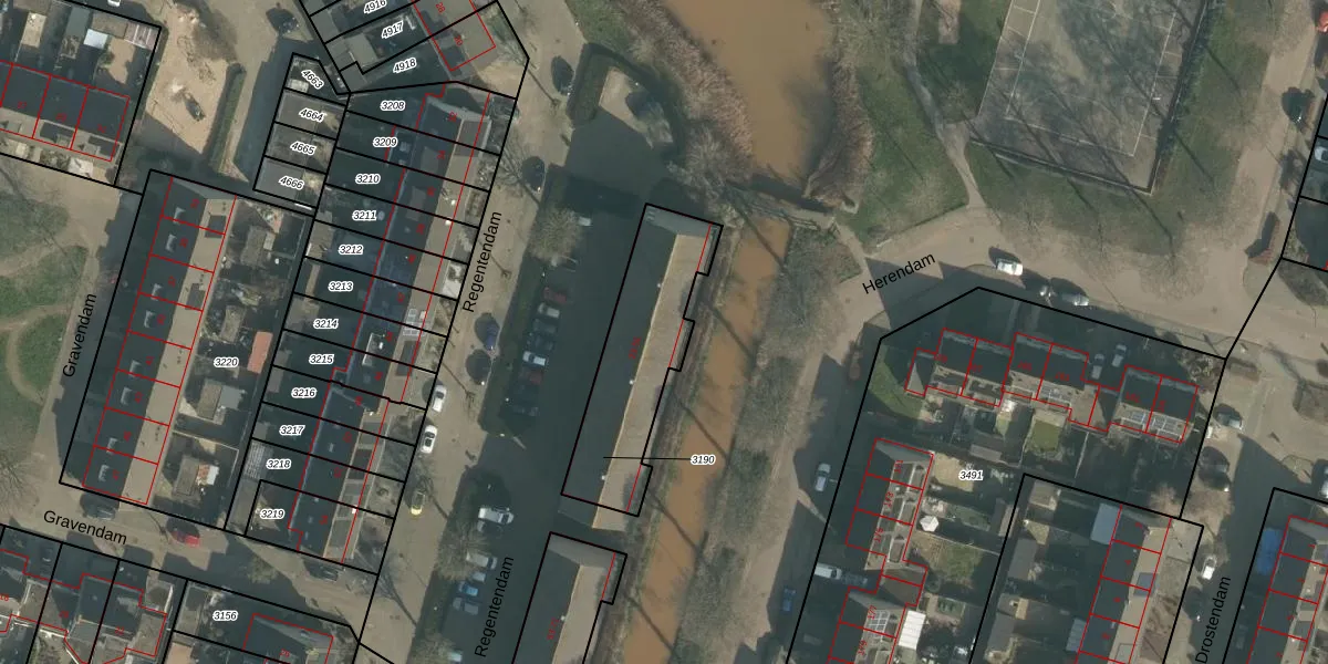 Het perceel waarop Regentendam 41 staat heeft een oppervlakte van 507 m². Dit is een groot perceel. De perceeloppervlakte wordt geregistreerd door het Kadaster. Gedetailleerde informatie over de maten van dit perceel kunt u vinden in het rapport Kadastrale kaart met maatvoering van Regentendam 41.