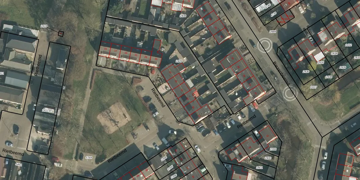 Het perceel waarop Rietbeemd 31 staat heeft een oppervlakte van 2174 m². Dit is een zeer groot perceel. De perceeloppervlakte wordt geregistreerd door het Kadaster. Gedetailleerde informatie over de maten van dit perceel kunt u vinden in het rapport Kadastrale kaart met maatvoering van Rietbeemd 31.