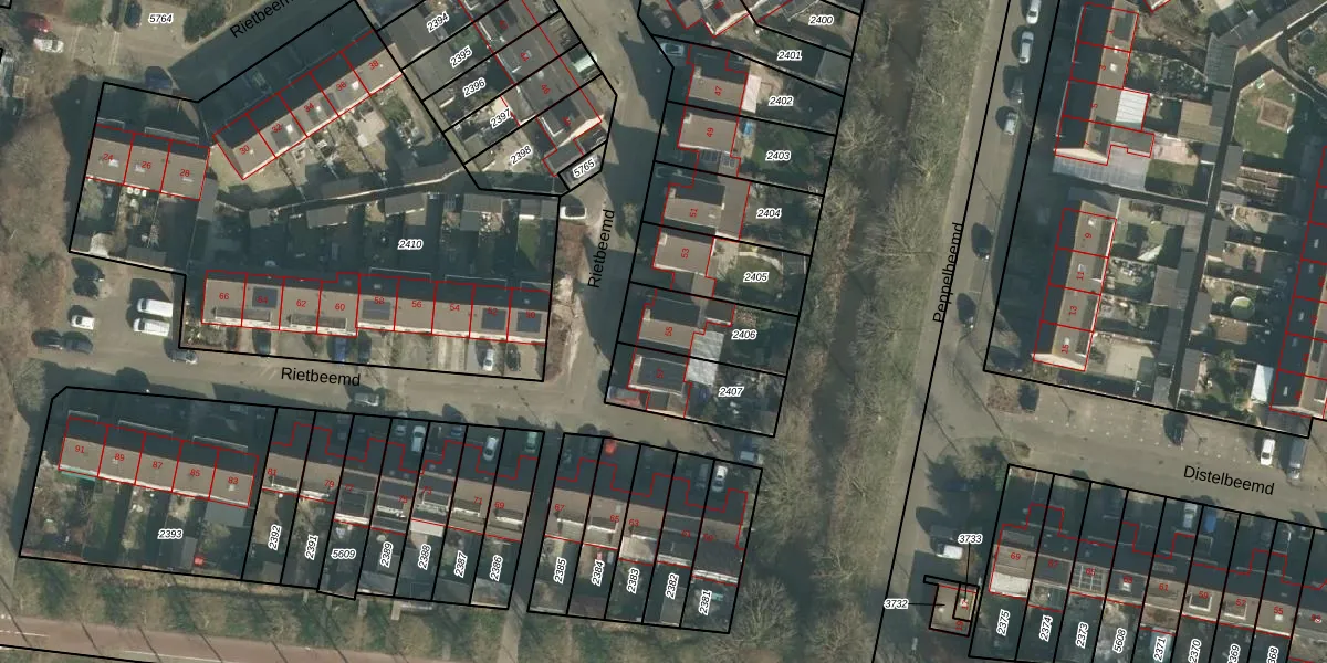 Het perceel waarop Rietbeemd 55 staat heeft een oppervlakte van 242 m². Dit is een middelgroot perceel. De perceeloppervlakte wordt geregistreerd door het Kadaster. Gedetailleerde informatie over de maten van dit perceel kunt u vinden in het rapport Kadastrale kaart met maatvoering van Rietbeemd 55.