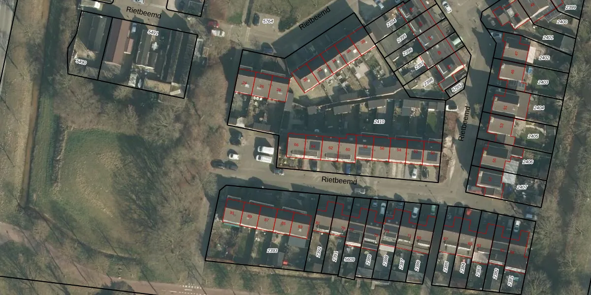 Het perceel waarop Rietbeemd 66 staat heeft een oppervlakte van 2650 m². Dit is een zeer groot perceel. De perceeloppervlakte wordt geregistreerd door het Kadaster. Gedetailleerde informatie over de maten van dit perceel kunt u vinden in het rapport Kadastrale kaart met maatvoering van Rietbeemd 66.