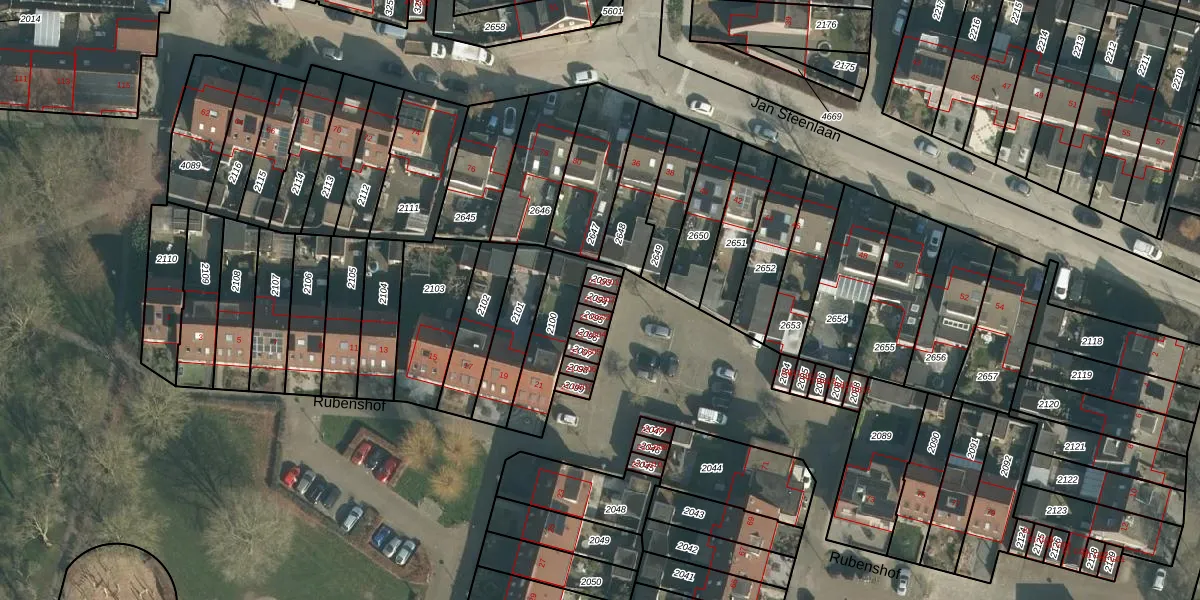 Gebruik de zoekbalk of klik op een perceel voor informatie over de adressen binnen dit perceel.