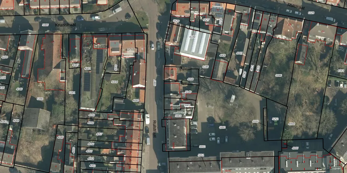 Het perceel waarop Rulstraat 53-C staat heeft een oppervlakte van 177 m². Dit is een middelgroot perceel. De perceeloppervlakte wordt geregistreerd door het Kadaster. Gedetailleerde informatie over de maten van dit perceel kunt u vinden in het rapport Kadastrale kaart met maatvoering van Rulstraat 53-C.