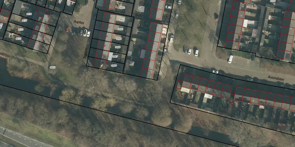 Het perceel waarop Saturnus 44 staat heeft een oppervlakte van 3678 m². Dit is een zeer groot perceel. De perceeloppervlakte wordt geregistreerd door het Kadaster. Gedetailleerde informatie over de maten van dit perceel kunt u vinden in het rapport Kadastrale kaart met maatvoering van Saturnus 44.