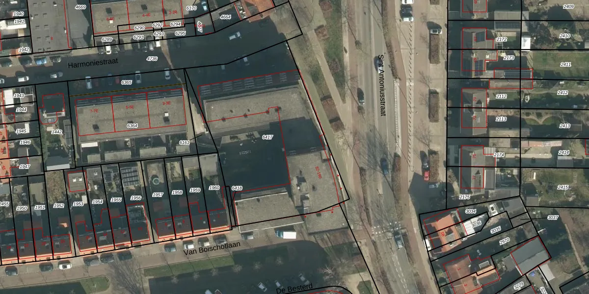 Het perceel waarop Sint Antoniusstraat 110 staat heeft een oppervlakte van 2096 m². Dit is een zeer groot perceel. De perceeloppervlakte wordt geregistreerd door het Kadaster. Gedetailleerde informatie over de maten van dit perceel kunt u vinden in het rapport Kadastrale kaart met maatvoering van Sint Antoniusstraat 110.