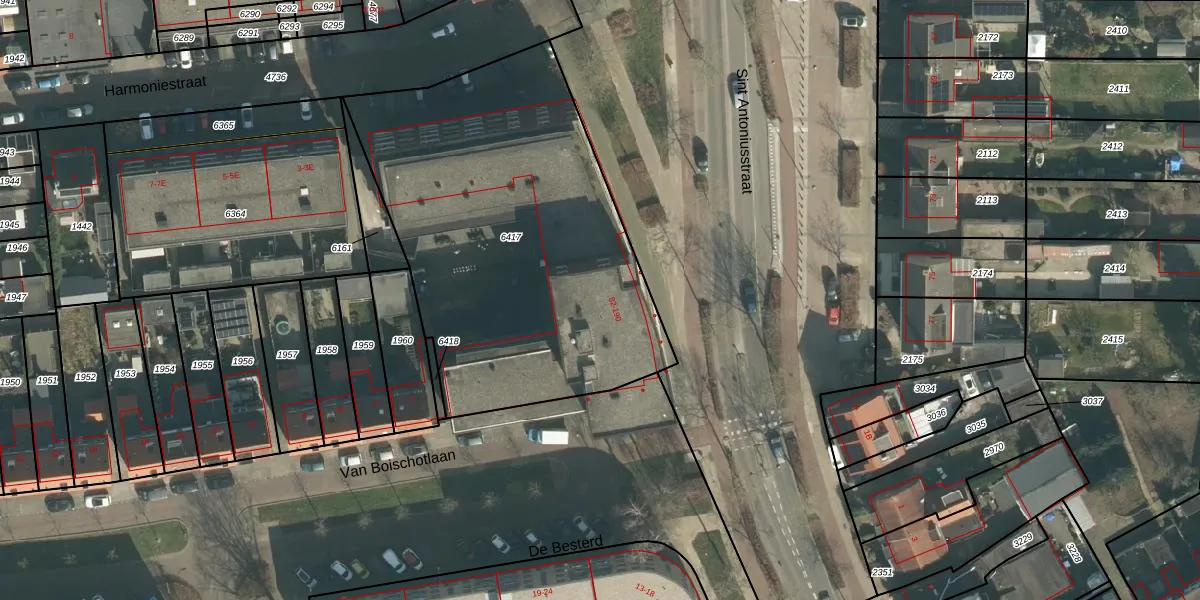 Het perceel waarop Sint Antoniusstraat 150 staat heeft een oppervlakte van 2096 m². Dit is een zeer groot perceel. De perceeloppervlakte wordt geregistreerd door het Kadaster. Gedetailleerde informatie over de maten van dit perceel kunt u vinden in het rapport Kadastrale kaart met maatvoering van Sint Antoniusstraat 150.