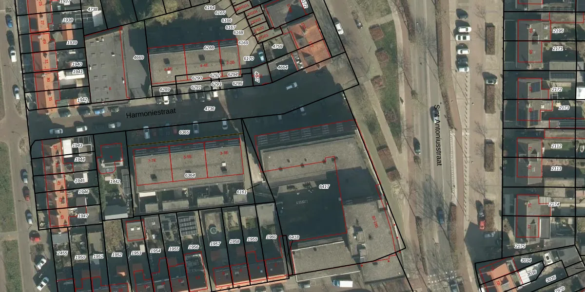 Het perceel waarop Sint Antoniusstraat 162 staat heeft een oppervlakte van 2096 m². Dit is een zeer groot perceel. De perceeloppervlakte wordt geregistreerd door het Kadaster. Gedetailleerde informatie over de maten van dit perceel kunt u vinden in het rapport Kadastrale kaart met maatvoering van Sint Antoniusstraat 162.