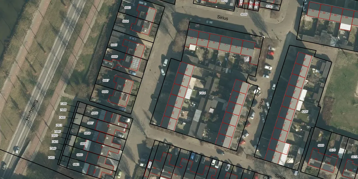 Het perceel waarop Sirius 19 staat heeft een oppervlakte van 2984 m². Dit is een zeer groot perceel. De perceeloppervlakte wordt geregistreerd door het Kadaster. Gedetailleerde informatie over de maten van dit perceel kunt u vinden in het rapport Kadastrale kaart met maatvoering van Sirius 19.