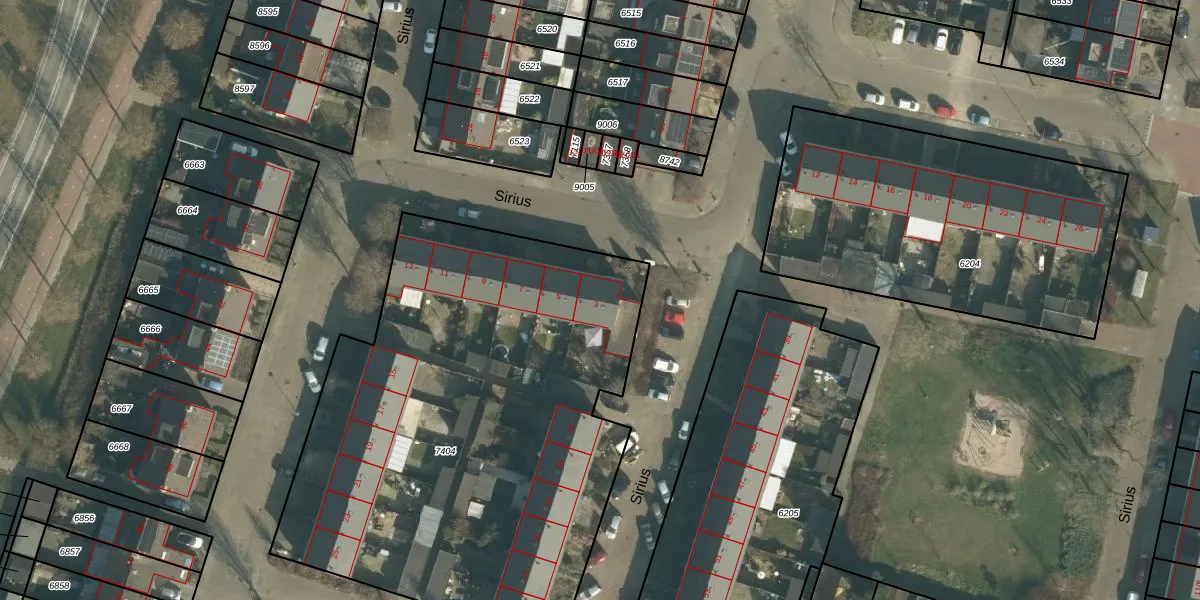 Het perceel waarop Sirius 3 staat heeft een oppervlakte van 2984 m². Dit is een zeer groot perceel. De perceeloppervlakte wordt geregistreerd door het Kadaster. Gedetailleerde informatie over de maten van dit perceel kunt u vinden in het rapport Kadastrale kaart met maatvoering van Sirius 3.