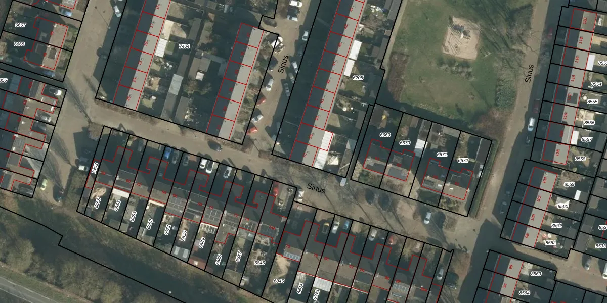 Het perceel waarop Sirius 57 staat heeft een oppervlakte van 1685 m². Dit is een zeer groot perceel. De perceeloppervlakte wordt geregistreerd door het Kadaster. Gedetailleerde informatie over de maten van dit perceel kunt u vinden in het rapport Kadastrale kaart met maatvoering van Sirius 57.