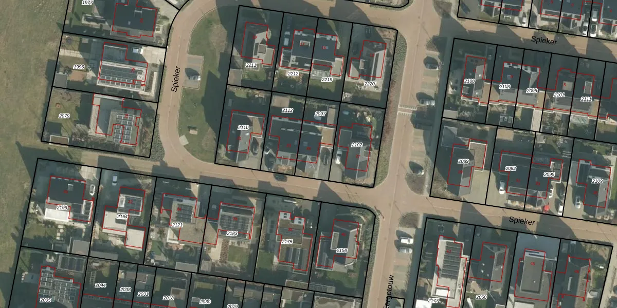 Het perceel waarop Spieker 25 staat heeft een oppervlakte van 291 m². Dit is een middelgroot perceel. De perceeloppervlakte wordt geregistreerd door het Kadaster. Gedetailleerde informatie over de maten van dit perceel kunt u vinden in het rapport Kadastrale kaart met maatvoering van Spieker 25.