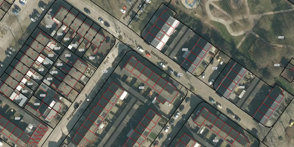 Het perceel waarop Staringstraat 18 staat heeft een oppervlakte van 5070 m². Dit is een zeer groot perceel. De perceeloppervlakte wordt geregistreerd door het Kadaster. Gedetailleerde informatie over de maten van dit perceel kunt u vinden in het rapport Kadastrale kaart met maatvoering van Staringstraat 18.