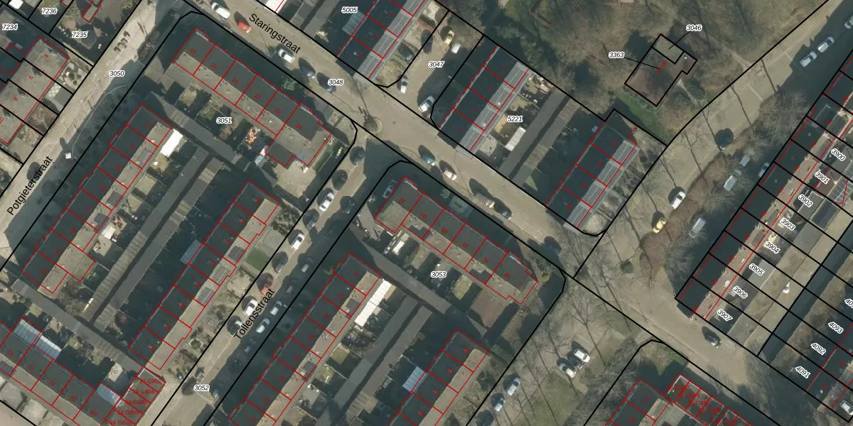Het perceel waarop Staringstraat 28 staat heeft een oppervlakte van 5070 m². Dit is een zeer groot perceel. De perceeloppervlakte wordt geregistreerd door het Kadaster. Gedetailleerde informatie over de maten van dit perceel kunt u vinden in het rapport Kadastrale kaart met maatvoering van Staringstraat 28.