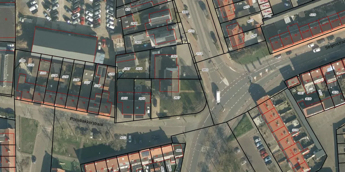 Gebruik de zoekbalk of klik op een perceel voor informatie over de adressen binnen dit perceel.
