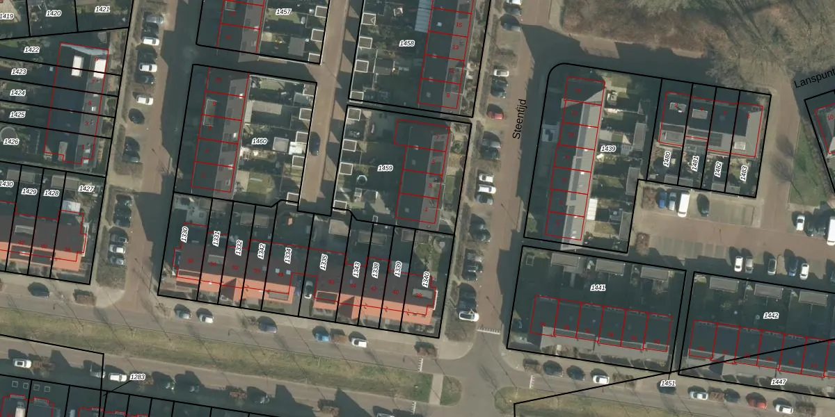 Steentijd 1 is gelegen op kadastraal perceel OTH01U1459. Deze kadastrale aanduiding is uniek en wordt gebruikt door het Kadaster om eigendomsrechten en andere zakelijke rechten vast te leggen. Het perceel maakt onderdeel uit van de kadastrale gemeente Oosterhout.