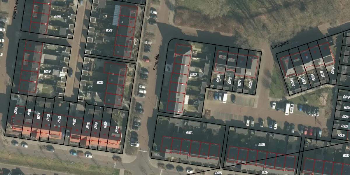 Het perceel waarop Steentijd 6 staat heeft een oppervlakte van 1110 m². Dit is een zeer groot perceel. De perceeloppervlakte wordt geregistreerd door het Kadaster. Gedetailleerde informatie over de maten van dit perceel kunt u vinden in het rapport Kadastrale kaart met maatvoering van Steentijd 6.