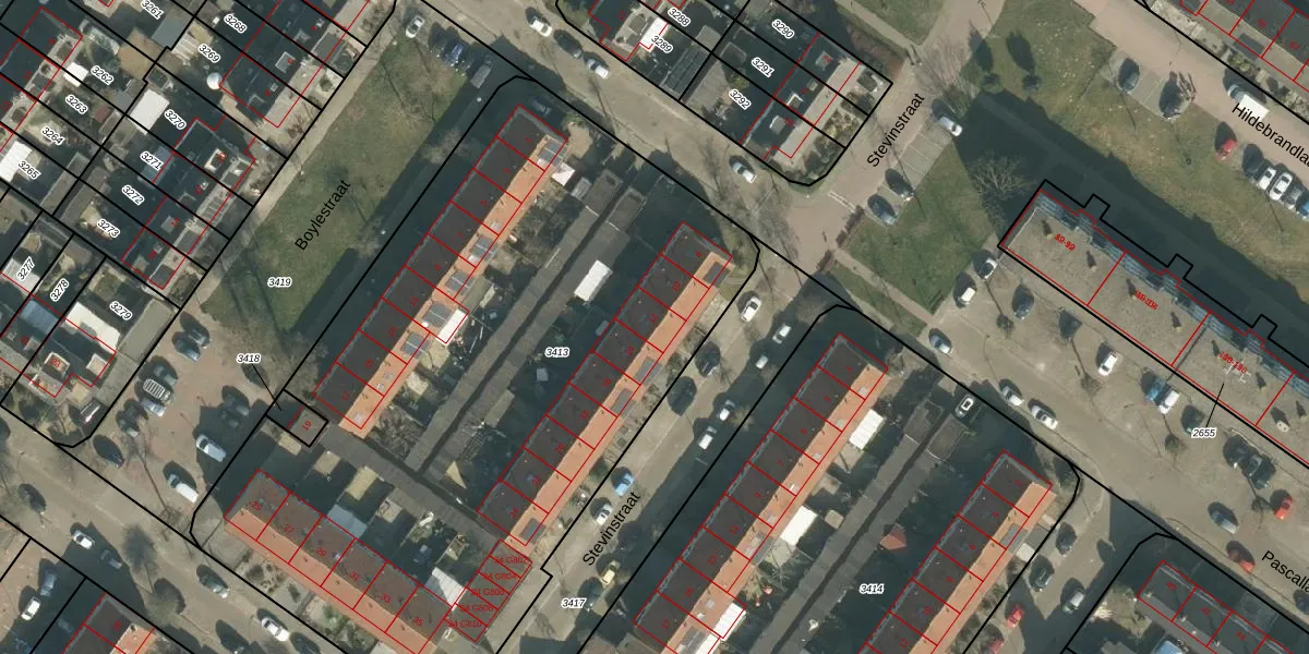 Het perceel waarop Stevinstraat 12 staat heeft een oppervlakte van 4230 m². Dit is een zeer groot perceel. De perceeloppervlakte wordt geregistreerd door het Kadaster. Gedetailleerde informatie over de maten van dit perceel kunt u vinden in het rapport Kadastrale kaart met maatvoering van Stevinstraat 12.