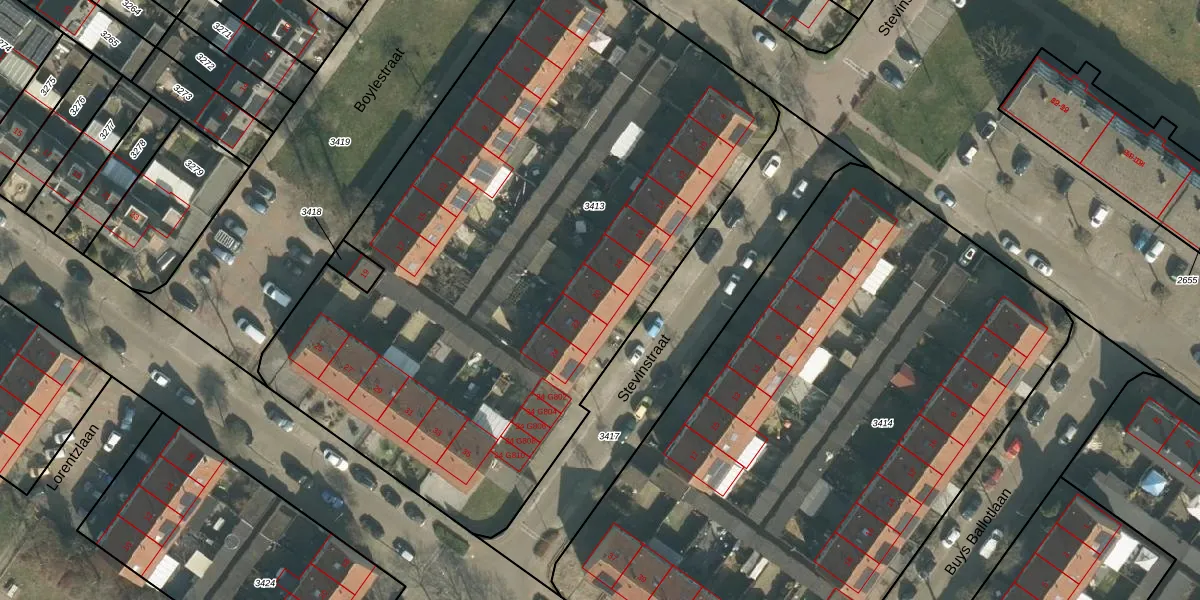 Het perceel waarop Stevinstraat 20 staat heeft een oppervlakte van 4230 m². Dit is een zeer groot perceel. De perceeloppervlakte wordt geregistreerd door het Kadaster. Gedetailleerde informatie over de maten van dit perceel kunt u vinden in het rapport Kadastrale kaart met maatvoering van Stevinstraat 20.