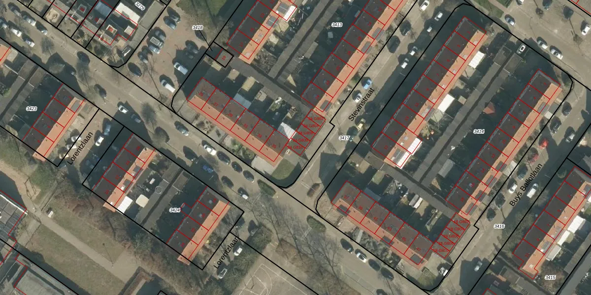 Het perceel waarop Stevinstraat 24-G810 staat heeft een oppervlakte van 4230 m². Dit is een zeer groot perceel. De perceeloppervlakte wordt geregistreerd door het Kadaster. Gedetailleerde informatie over de maten van dit perceel kunt u vinden in het rapport Kadastrale kaart met maatvoering van Stevinstraat 24-G810.