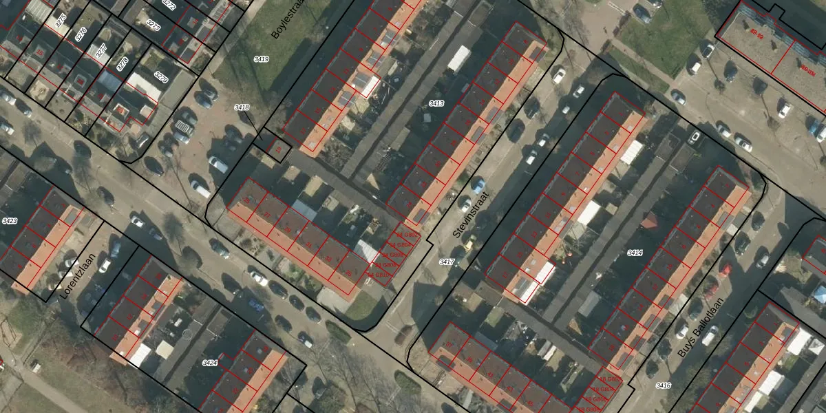 Het perceel waarop Stevinstraat 24 staat heeft een oppervlakte van 4230 m². Dit is een zeer groot perceel. De perceeloppervlakte wordt geregistreerd door het Kadaster. Gedetailleerde informatie over de maten van dit perceel kunt u vinden in het rapport Kadastrale kaart met maatvoering van Stevinstraat 24.