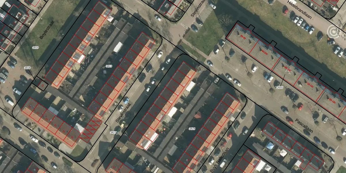 Het perceel waarop Stevinstraat 5 staat heeft een oppervlakte van 4267 m². Dit is een zeer groot perceel. De perceeloppervlakte wordt geregistreerd door het Kadaster. Gedetailleerde informatie over de maten van dit perceel kunt u vinden in het rapport Kadastrale kaart met maatvoering van Stevinstraat 5.