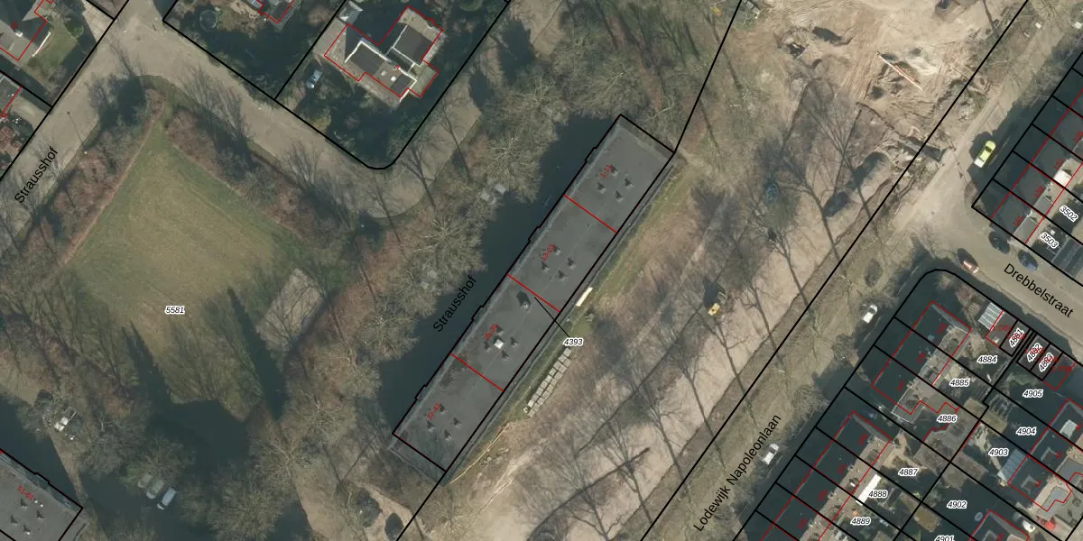Het perceel waarop Strausshof 23 staat heeft een oppervlakte van 891 m². Dit is een groot perceel. De perceeloppervlakte wordt geregistreerd door het Kadaster. Gedetailleerde informatie over de maten van dit perceel kunt u vinden in het rapport Kadastrale kaart met maatvoering van Strausshof 23.