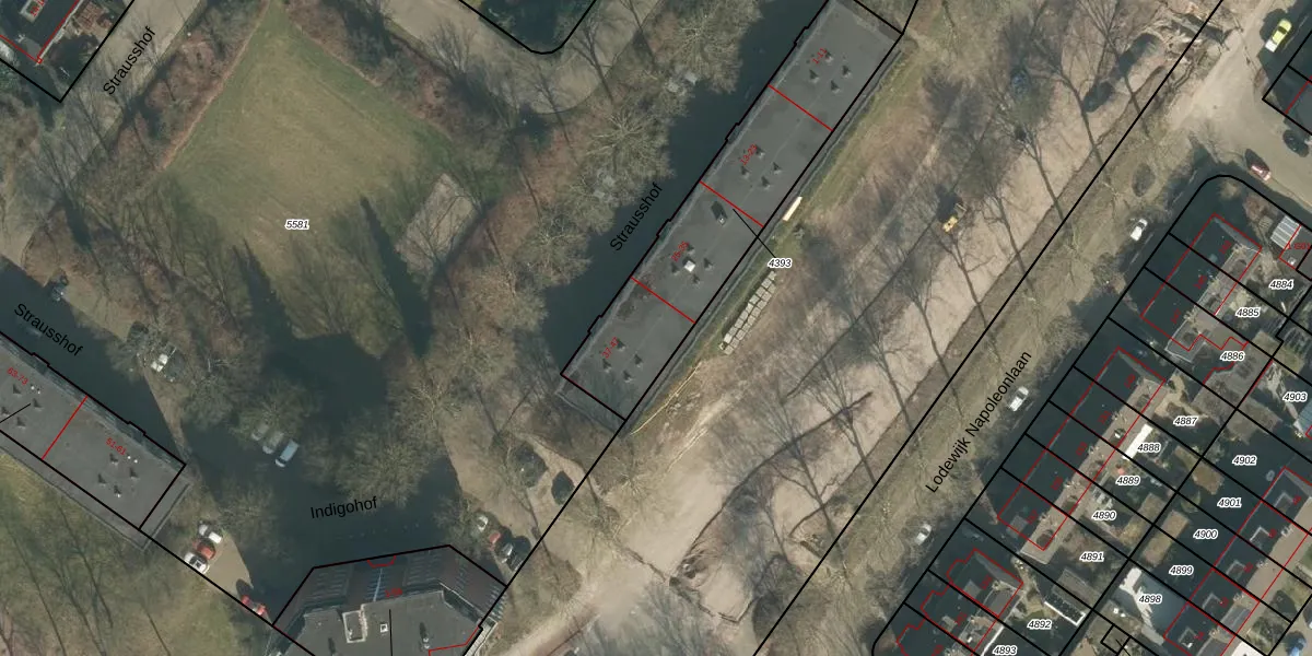 Het perceel waarop Strausshof 39 staat heeft een oppervlakte van 891 m². Dit is een groot perceel. De perceeloppervlakte wordt geregistreerd door het Kadaster. Gedetailleerde informatie over de maten van dit perceel kunt u vinden in het rapport Kadastrale kaart met maatvoering van Strausshof 39.