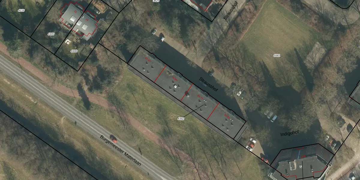 Het perceel waarop Strausshof 77 staat heeft een oppervlakte van 891 m². Dit is een groot perceel. De perceeloppervlakte wordt geregistreerd door het Kadaster. Gedetailleerde informatie over de maten van dit perceel kunt u vinden in het rapport Kadastrale kaart met maatvoering van Strausshof 77.